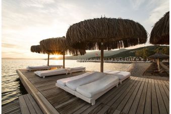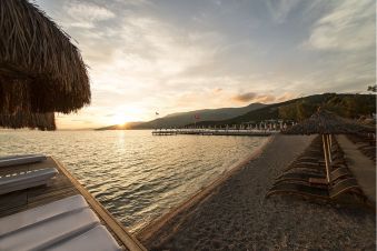 Собствен - 300м пясъчна ивица, 2 платформи - чадъри, шезлонги и матраци на плажа и при басейна безплатно.