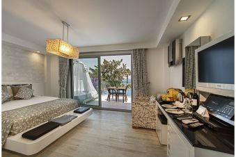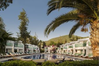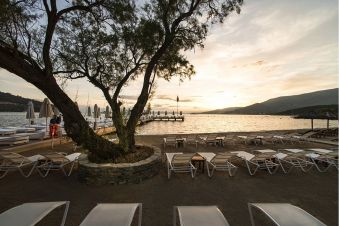 Хотел Voyage Torba се намира 30 км от летище и на 6 км от центъра на Бодрум, на брега на морето.