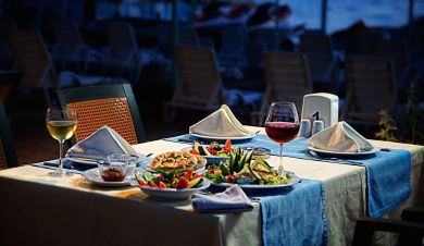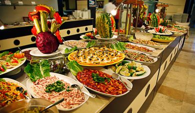 Хотелът функционира на база All Inclusive, включваща три основни хранения, междинни закуски и безплатна консумация на местни алкохолни и безалкохолни напитки.