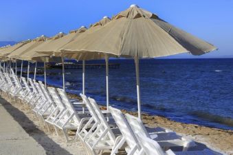 Хотелът има частна зона на плажа. Предлага удобството на открит басейн и тераса за слънчеви бани.
