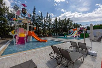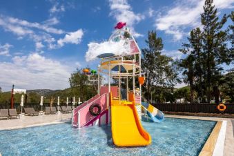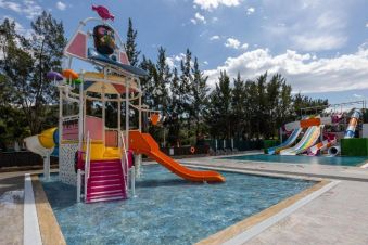 Собствен пясъчно-чакълест плаж на ивица на 2 км от хотела, предлага се безплатен шатъл до плажа. Бар на плажа. На разположение на гостите има 2 открити басейна и аквапарк. Чадъри, шезлонги и плажни кърпи на плажа и при басейна се предоставят безплатно.
