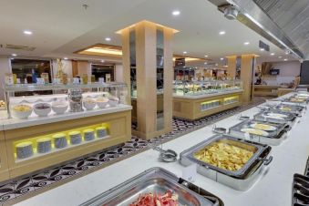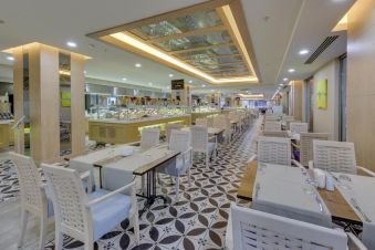 На разположение на гостите на основен ресторант (има диетично меню), 3 а`ла карт ресторанта: турски, италиански и с морска храна и 3 снек ресторанта. Освежаващи напитки се поднасят в 3 бара (лоби, при басейна и на плажа), има и сладкарница.