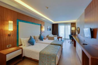 Хотелът посреща гостите си в 285 климатизирани стаи, разпределени в 4 блока: Superior Room (34 кв.м), Junior Suite Room (53 кв.м, спалня и дневна с разтегателен диван), Family Suite Room (71 кв.м, 2 отделни спални и дневна с разтегателен диван). Всички стаи са оборудвани с телефон, телевизор, минибар, сейф (безплатен), баня с душ или вана, сешоар, балкон, Wi-Fi. Почистване на стаите – всеки ден, смяна на спалното бельо – 2 пъти в седмицата, смяна на кърпите – 3 пъти в седмицата.