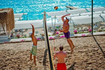 Хотелът има собствен пясъчно-чакълест плаж с кей, има и бар на плажа - платен. На разположение на гостите има 2 закрити басейна за възрастни, 10 открити басейна за деца, аквапарк с 21 водни пързалки. Чадъри, шезлонги и матраци на плажа и при басейните се ползват безплатно.