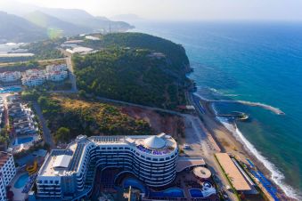 Хотелът е на 200 м от морето, на 7 км от Алания и на 120 км от летище Анталия.