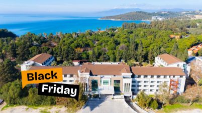 Собствен, пясъчен на 400 м от хотела. Шезлонги и чадъри на плажа и при басейна - безплатно.