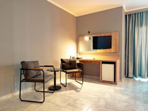 В стаите: Комфортни и обзаведени в неутрални, светли цветове, всички стаи са климатизирани и с балкон или тераса. Освен това разполагат със сейф, сателитна телвизия, минибар и безплатно WiFi. Стаите са с гледка градина или странична гледка към морето.