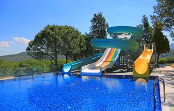 За децата: детски бюфет, детска площадка, стая за игри, мини клуб (4-12 г.), детски басейн с комплекс от водни пързалки.