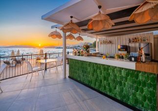Deluxe Suite Sea View - 45 м2, разполага със спалня със собствена баня и просторна всекидневна със съвременна и елегантна декорация. Апартаментът разполага и с голям балкон със страхотен пейзаж, с изглед към басейна и блестящото море.