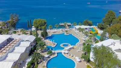 Разположение: Хотелът се намира на 35 км от летище Милас (Бодрум), на 1 км от центъра и търговската зона на Бодрум. Разположен е на първа линия от брега на морето. Разполага с красива територия, зелени градини върху обща площ от 32000 м².