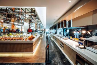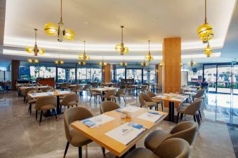 На разположение на гостите е основен ресторант, отворен за закуска, късна закуска, обяд, вечеря и късна вечеря. През деня закуски се предлагат в бара при басейна от 12:00 до 16:00ч. Два а`ла карт ресторанта: гръцки и Тратория (османска и италианска кухня). Разхладителни напитки и закуски се поднасят в 4 бара: лоби бар, бар при басейна, бар на плажа и диско бар.