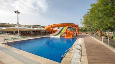 Хотелът разполага с традиционни бели двуетажни сгради: общо 155 стаи с квадратура 18-24 кв м. Разполага с основен ресторант, бар, фитнес център, сауна, басейн с водни пързалки. Шезлонги, чадъри и възглавници при басейна са безплатни за всички гости.