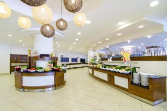 На разположение на гостите са основен ресторант и 3 а`ла карт ресторанта: Blue Beach Club - международна кухня, La Pirata - международна кухня и Kebeb Hous - турска кухня. Разнообразни напитки и закуски се поднасят в 6 бара, единият от които работи деноношщно.
