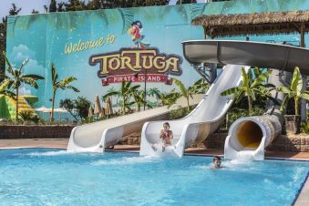 Хотелът има собствен пясъчен плаж със сертификат "Син флаг", 2 открити басейна със сладка вода, неотопляеми, 210 кв.м, 380 кв.м, отворени 08:30-18:30 ч. Тортуга Аква и тематичен парк (безплатен вход): 14 водни пързалки, отворени 10:00-18:00 ч. (храна и напитки срещу заплащане). Чадъри и шезлонги на плажа и при басейните се предоставят безплатно.