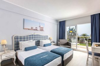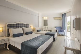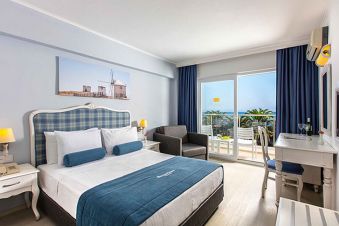 Хотелът посреща гостите си в 354 климатизирани стаи: 250 стандартни стаи с изглед градина или с изглед море (20-23 кв.м), 68 фамилни стаи (две свързани помещения и с две бани, 44-46 кв.м.), 30 стандартни стаи с джуетажни легла (23 кв.м), 4 апартамента (спалня, всекидневна, баня с джакузи, 44 кв.м) и 4 стаи за инвалиди. Всички стандартни стаи имат балкон с хубава гледка към басейн или градина. Стаите са проектирани, обзаведени и оборудвани в егейски стил и приятни цветове. Стандартните двойни стаи са подходящи за максимум 2 човека, стандартните тройни стаи са подходящи за максимум 3 възрастни. Фамилните стаи са предназначени за комфорт на семейства, особено с 2 или повече деца. Две стандартни стаи, всяка със собствен балкон с изглед към градина или басейн и вход, са свързани с врата между тях. Всяка стая разполага със собствена баня с душ, LCD телевизор и климатик. Всяка стая може да вземе 1 допълнително легло. Максималната обща заетост е 3 възрастни с 3 деца. SUITE ROOM са проектирани и оборудвани за перфектна почивка. Оборудвани са с два LCD телевизора, баня с джакузи, дъждовен душ и халати, кафемашина и два балкона с красива панорамна гледка към Егейско море. Подходящи са за максимум 2 възрастни. Почистване на стаите – всеки ден, смяна на бельото – 2 пъти в седмицата, смяна на кърпите – 3 пъти в седмицата.