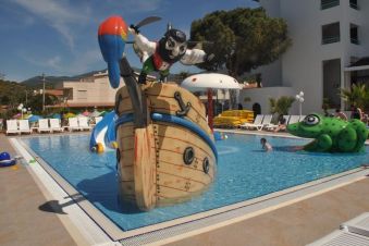 3 водни пързалки за възрастни, 3 пързалки за деца. Басейните и пързалките са отворени в зависимост от метеорологичните условия. Чадъри, шезлонги и матраци при басейните и на плажа с ползват безплатно.