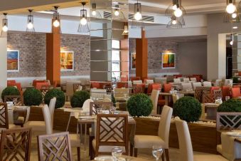 На разположение на гостите са основен ресторант и 2 а'ла карт ресторанта: интернационален, морски - срещу заплащане, с предварителна резервация), сладкарница. Освежаващи напитки и закуски се поднасят в 6 бара: лоби бар 24/7, втори лоби бар, бистро бар, пъб, бар на басейна, плажен бар)