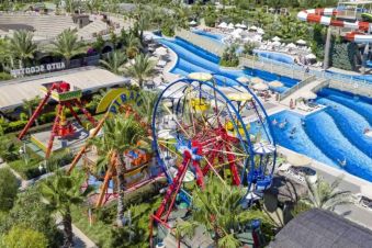Хотелът разполага със собствен пясъчно-чакълест плаж със сертификат Син флаг. На разположение на гостите има 4 открити и 2 закрити басейна, 8 водни пързалки. Чадъри и шезлонги на плажа и при басейна се ползват безплатно, плажни кърпи – срещу депозит.