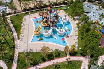 Собствен пясъчно–чакълест плаж. На разположение на гостите са 4 открити басейна (2850, 380, 560 и 50 кв. м), 2 закрити басейна (единият отопляем през зимния сезон). Басейн с 5 водни пързалки за възрастни (отопляем през зимния сезон). Интерактивен аквапарк за деца със 7 пързалки за деца и 3 пързалки за бебета. Кърпи, чадъри, шезлонги и матраци се ползват безплатно.