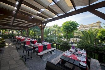 Основен ресторант и 7 а`ла карт ресторанта, които предлагат далекоизточна, османска, мексиканска кухня, рибен, барбекю, италиански ресторант, турска закуска (посещение по предварителна заявка, по време на престоя, посещение на всеки от ресторантите 1 път - безплатно). Има и 6 бара.