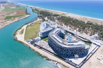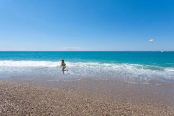 Собствен пясъчно-чакълест плаж на 250 м от хотела. Между хотела и плажа има автомобилен път, осигурен е безплатен превоз. На разположение на гостите са открит басейн с прясна вода 1258 кв.м (отопляем през април и май), 1 закрит басейн с прясна вода 140 кв.м (отопляем през студения сезон: април, май, октомври). 3 водни пързалки.