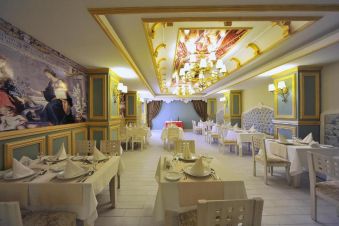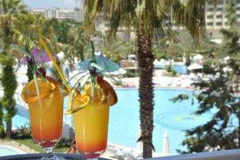 Хотелът има основен ресторант и 2 а`ла карт ресторанта - турски и италиански. В петте бара се поднасят разнообразни напитки.