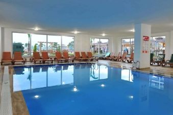 хотелът разполага със собствен плаж. Има 6 открити и 2 закрити басейна , аквапарк с 9 пързалки.