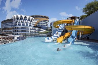 Хотелът има собствен плаж, платформа (4500 кв.м). За удобство на гостите си има също 3 открити басейна с 3 водни пързалки, чадъри, шезлонги и матраци на плажа и при басейна се предоставят безплатно. Плажни кърпи се ползват срещу депозит.