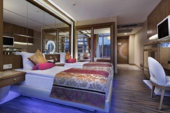 Хотелът посреща гостите си в 598 климатизирани стаи, разположени в една 10-етажна основна сграда, от които 537 Standard room (с изглед суша или море - 26-36 m²), 29 Doublex family land view (на 2 нива, всяко от които има 1 спалня и 1 баня, 65–75 кв.м); 12 Family room sea view (2 спални – 50 кв.м). Всички стаи са оборудвани с телевизор, телефон, баня с душ, сешоар, сет за кафе/чай, минибар (вода, безалкохолни напитки, бира – безплатен), сейф (безплатен). Почистване на стаите и смяна на кърпите - всеки ден, спалното бельо се сменя 2 пъти седмично.