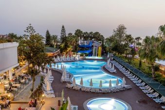 Хотелът има собствен пясъчен плаж, както и открит басейн, закрит басейн и 3 водни пързалки. Слънчеви чадъри и матраци се ползват безплатно.