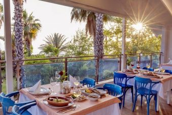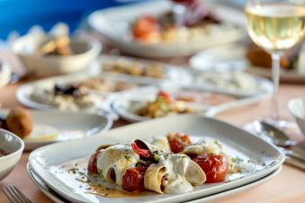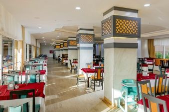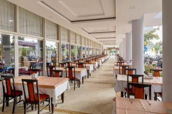 На разположение на гостите са основен ресторант и рибен а`ла карт ресторант (блок маса). В 4-те бара се поднасят освежаващи напитки и закуски. All Inclusive - закуска, обяд и вечеря на блок маса, допълнителни хранения, алкохолни и безалкохолни напитки местно производство без лимит.