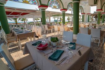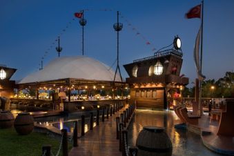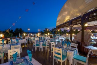 Хотелът разполага с основен ресторант, където се предлага и диетично меню. 5 а`ла карт ресторанта: китайски, рибен, италиански, турски, барбекю – на територията на комплекса, за едноседмичен престой посещение на един от ресторантите – безплатно, от 10.05 до 31.10). Wine house (на плажа, от 03.05 до 31.10); 6 бара (10:00–01:30ч., един от баровете на територията на комплекса работи 24 часа.