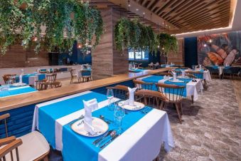 На разположение на гостите са ресторант и два а`ла карт ресторанта: средиземноморски и турски. Освежаващи напитки и закуски се поднасят в лоби бар, бар на плажа, бар при басейна, Snack Bar, H2O Bar и Disco Bar.