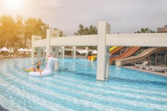 Хотелът има собствен пясъчен плаж с камъчета, дълъг 60 м. За удобство на гостите си има и 2 открити басейна, 5 водни пързалки. Легла, чадъри, матраци, плажни кърпи на плажа и при басейна се осигуряват безплатно.