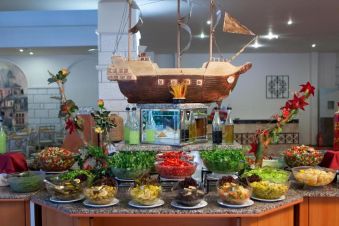 Хотелът разполага с основен ресторант, в който се предлага диетична и вегетарианска храна. Има и 3 а`ла карт ресторанта (рибен, италиански, турски), снек ресторант В 4-те бара се предлагат разнообразни напитки.