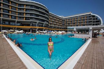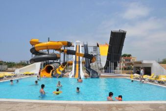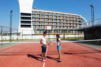 Хотелът разполага със собствен пясъчно-чакълест плаж на около 400 метра от сградата на хотела (пешеходно през подлез). Осигурен е безплатен транспорт до плажа. Открит басейн, два детски басейна, два басейна с водни пързалки за малки и големи. Безплатно ползване на чадъри, шезлонги и матраци на плажа и при басейните. Хотелът разполага със собствен бар на плажа.