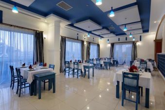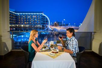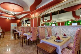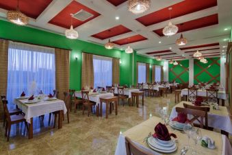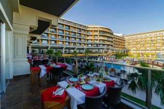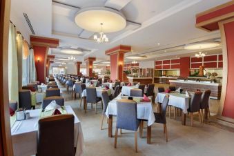 Основен ресторант, 4 а`ла карт ресторанта (турски и рибен), пет бара и денонощен ирландски пъб. Хотелът функционира на база Ultra All Inclusive, включваща закуска, обяд и вечеря на блок маса, допълнителни закуски и неограничена консумация на местни и някои вносни алкохолни и безалкохолни напитки. Всички бутилирани напитки се предлагат срещу допълнително заплащане.