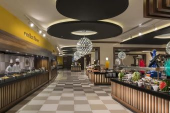 Основният ресторант сервира отбрани ястия от интернационалната кухня за закуска, обяд и вечеря, поднесени на шведска маса. В a`ла карт ресторанта можете да се насладите на блюда от мексиканската, италианската, гръцката, френската и далекоизточната кухня. Баровете предлагат разнообразие от алкохолни и безалкохолни напитки. Хотелът функционира на база Ultra All Inclusive, включваща закуска, обяд и вечеря на блок маса, разнообразие от допълнителни закуски и неограничена консумация на местни и някои вносни алкохолни и безалкохолни напитки през цялото денонощие.