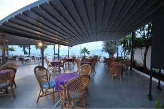 Amos Hotel се намира на собствен пясъчен плаж. Предлага един открит плувен басейн за възрастни и един детски басейн. Чадъри и шезлонги на басейна и на плажа - безплатно.