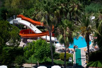 Основен ресторант, а - ла - карт ресторант (срещу заплащане), 6 бара, открит и закрит басейн, аквапарк с две пързалки, 2 конферентни зали, паркинг, Wi-Fi (спрямо концепцията на хотела).