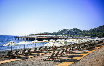 Разположение: Хотелът се намира на 5 км от центъра на Кемер, на 52 км от междунардоното летище в Анталия, на брега на морето. Открит е през 2024 г., разположен на територия с площ от 60 000 м2.