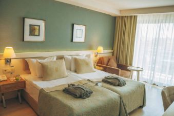 Хотелът се състои от една 9-етажна сграда (има асансьори), в която са разпределени 382 климатизирани стаи, от които Standard Room Sea View (22 кв.м), Standard Room Land View (22 кв.м), Standard Room Side Sea View (22 кв.м), Family Room 1 Bathroom (33 кв.м), Family Room 2 Bathroom (50 кв.м). Те са оборудвани с телевизор, телефон, минибар, сейф, баня с вана/душ, балкон, Wi-Fi. Почистване на стаите и смяна на кърпите – всеки ден, смяна на спалното бельо – 2 пъти седмично.
