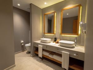 Всички стаи са оборудвани с климатик, телевизор, телефон, баня с душ, сешоар, сет за чай/кафе, минибар (безплатен), сейф (безплатен), балкон.