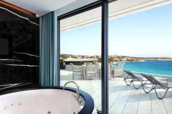 Хотелът разполага със 105 стаи, всички оборудвани с климатик, телевизор, телефон, баня с душ/вана, сешоар, тоалетни принадлежности, мини бар, сет за чай/кафе, сейф, балкон, Wi-Fi интернет. Почти всички стаи са с изглед морето. Почистване на стаите - всеки ден, смяна на спалното бельо и кърпите - 2 пъти в седмицата.