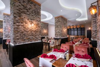 Основен ресторант, а-ла-карт ресторант – интернационален (1 безплатно посещение минимум 7 нощувки), сладкарница, 3 бара, открит и закрит басейн, водни пързалки, СПА център.